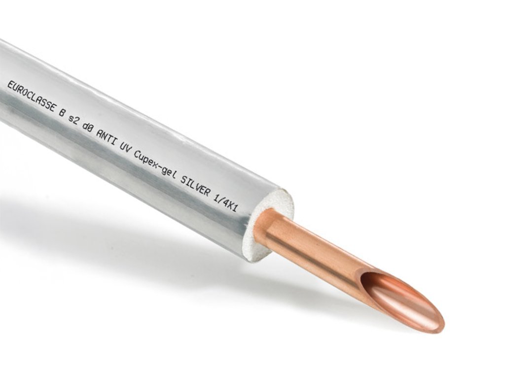 CUPEX GEL Silver je medená rúrka, ktorá je potiahnutá vrstvou zosieťovanej polyetylénovej (PE) peny. Zvonku je k nej pripevnená hliníková fólia ANTI-UV.